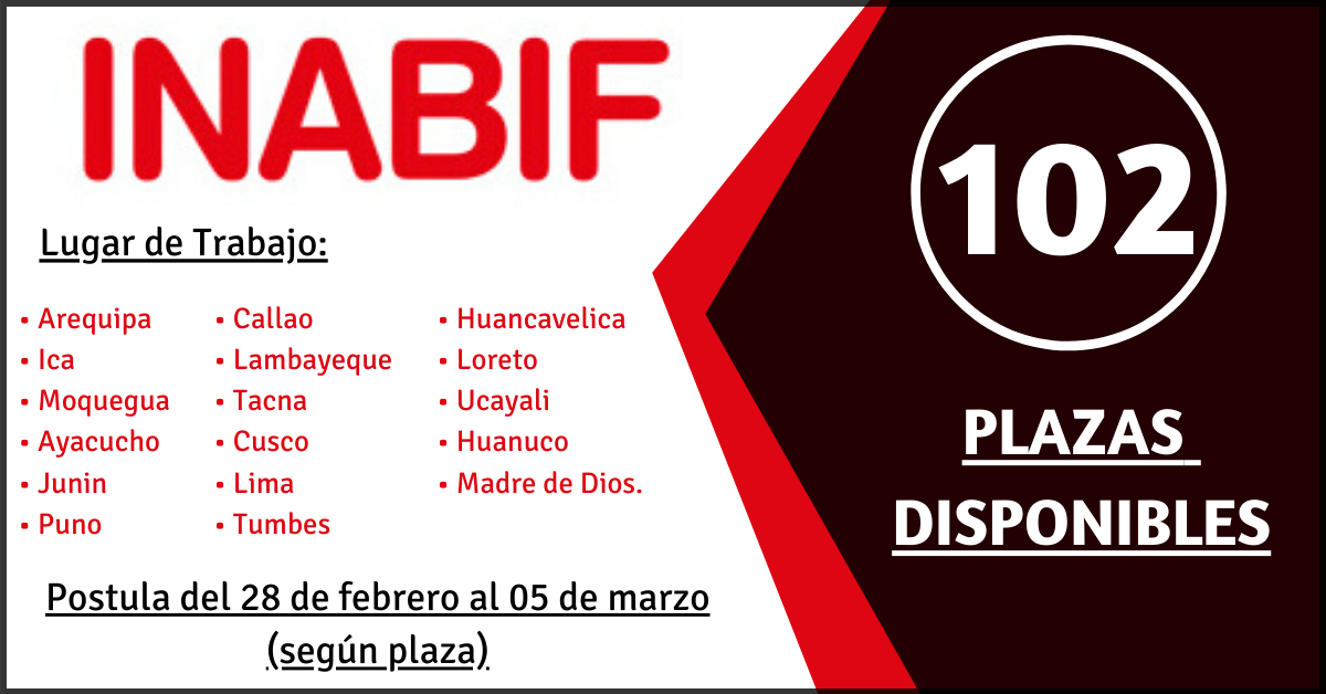 Lugar de trabajo: Arequipa, Ica, Moquegua, Ayacucho, Junin, Puno, Callao, Lambayeque, Tacna, Cusco, Lima , Tumbes, Huancavelica, Loreto, Ucayali, Huanuco, Madre de Dios.